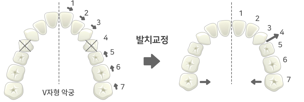 비발치 교정(어금니 후방이동, 치간삭제, 악궁확장 장치)을 하실 수 있습니다.