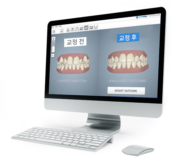인비절라인 클린체크 프로그램으로 스캔 즉시 교정후의 치아 모습까지 예측이 가능하여